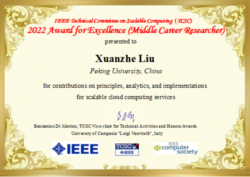 2022年12月18日,计算机学院刘譞哲老师因在“大规模可扩展云服务计算系统的原理、解析和实现”的杰出贡献,获颁2022年度IEEE Technical Committee on Scalable Computing(TCSC)的职业中期卓越研究成就奖( Award for Excellence(Middle Career Researcher))。
